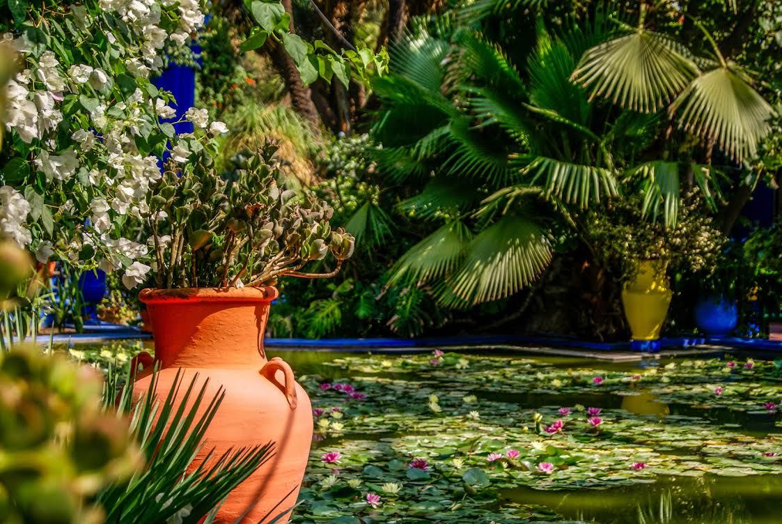 Le jardin adopta la couleur "bleu Majorelle", que l'artiste créa pour exprimer la profondeur et l'intensité de l'océan.